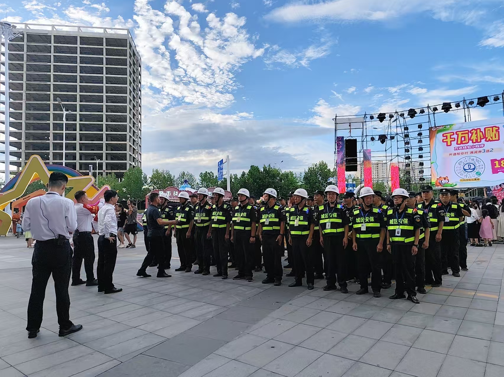 活動(dòng)期間,城區(qū)保安人員按照既定方案,每天晚上6點(diǎn)到崗到位,配合公安、消防等部門做好秩序維護(hù)、交通疏導(dǎo)及服務(wù)保障等工作。出入口崗位的保安負(fù)責(zé)引導(dǎo)群眾有序進(jìn)出,舞臺周邊的保安重點(diǎn)維護(hù)觀眾秩序,防止擁擠、踩踏等危險(xiǎn)情況發(fā)生。盡管每天晚上工作時(shí)間長達(dá)6小時(shí),他們時(shí)刻保持警惕,沒有絲毫放松。現(xiàn)場人流量一度突破萬人次,但執(zhí)勤保安始終用規(guī)范的動(dòng)作、耐心的態(tài)度引導(dǎo)人流,以嚴(yán)謹(jǐn)?shù)墓ぷ髯黠L(fēng)和飽滿的精神狀態(tài)為活動(dòng)保駕護(hù)航。