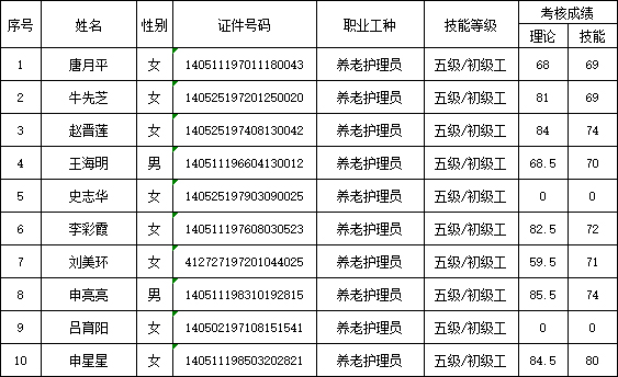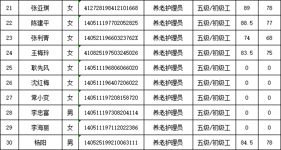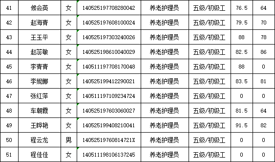 山西潔霸清潔服務(wù)集團股份有限公司職業(yè)技能等級認定中心2026年1月22日第1批養(yǎng)老護理員初級認定人員成績公示